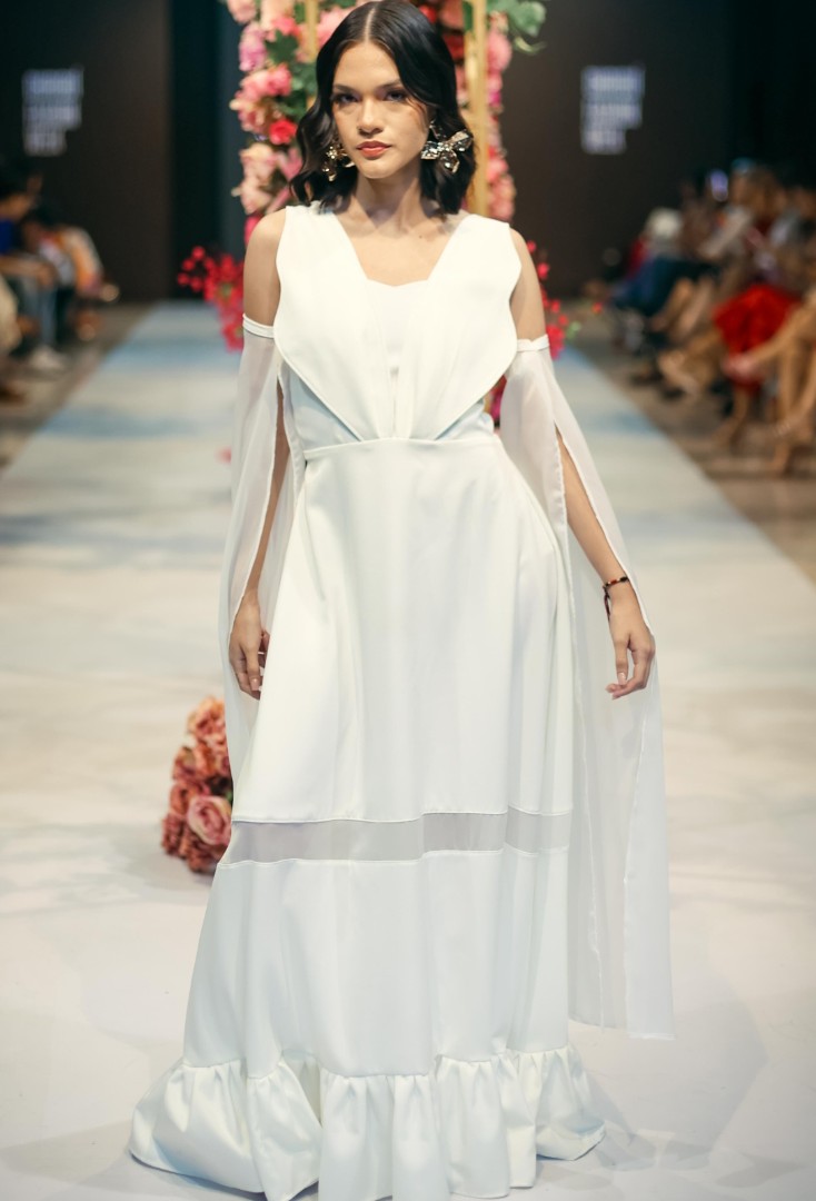 | Detalles | Corte Sirena, Cremallera, Elegante, abertura en espalda, detalle de hoja en pecho, rucha en basta, tira transparente en falda |