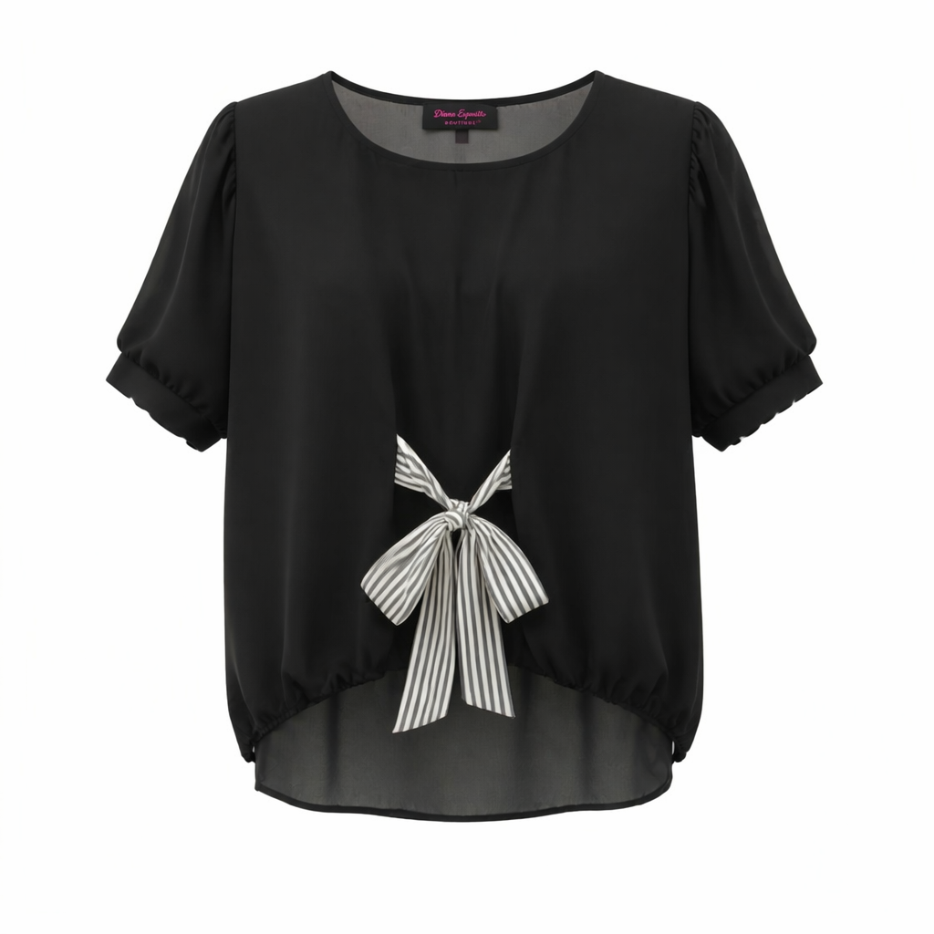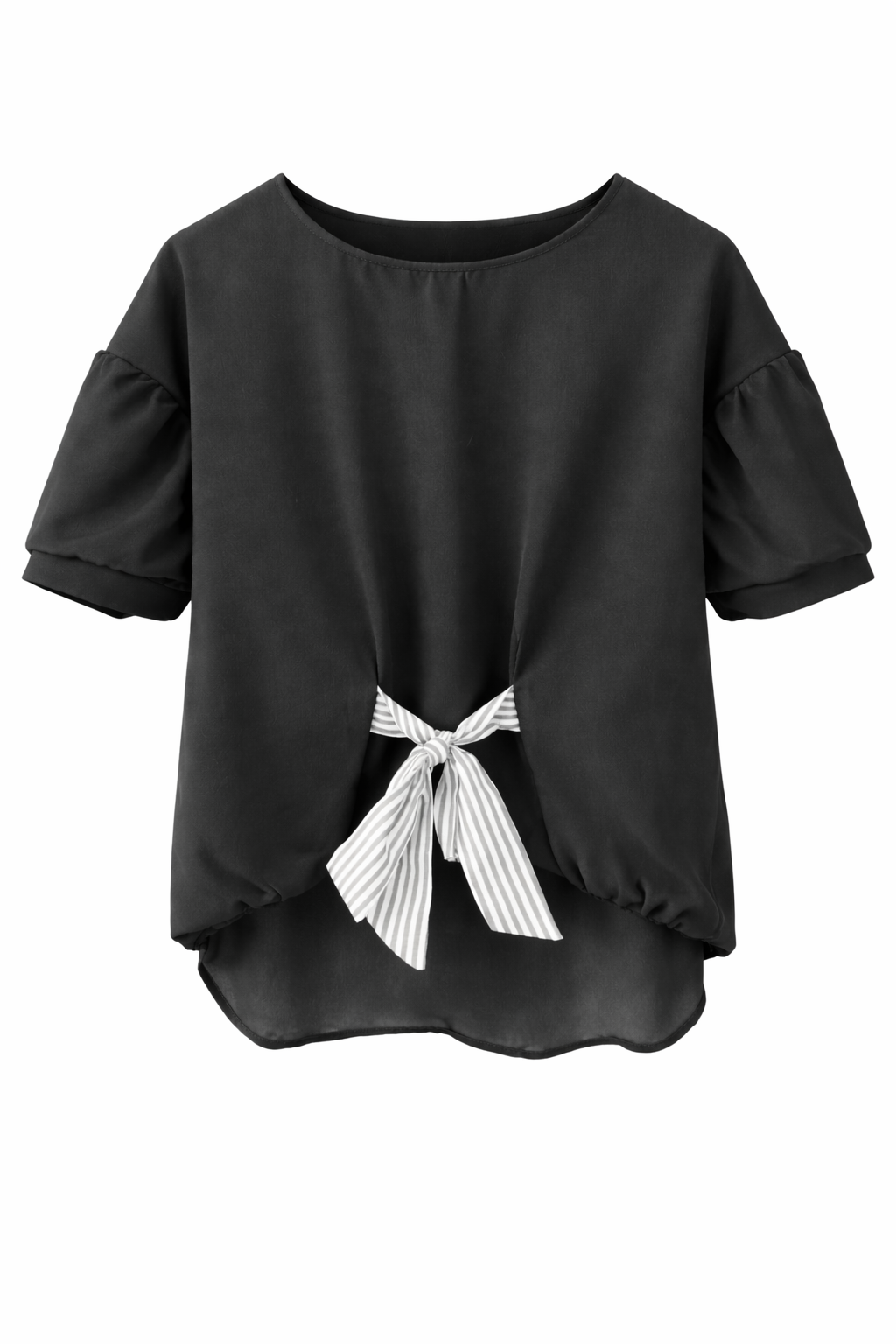 Blusa negra asimétrica en basta con detalle lazo en cintura